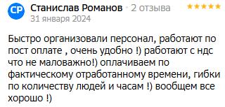 Предоставим персонал в необходимом количестве и выполним все условия, прописанные в договоре.